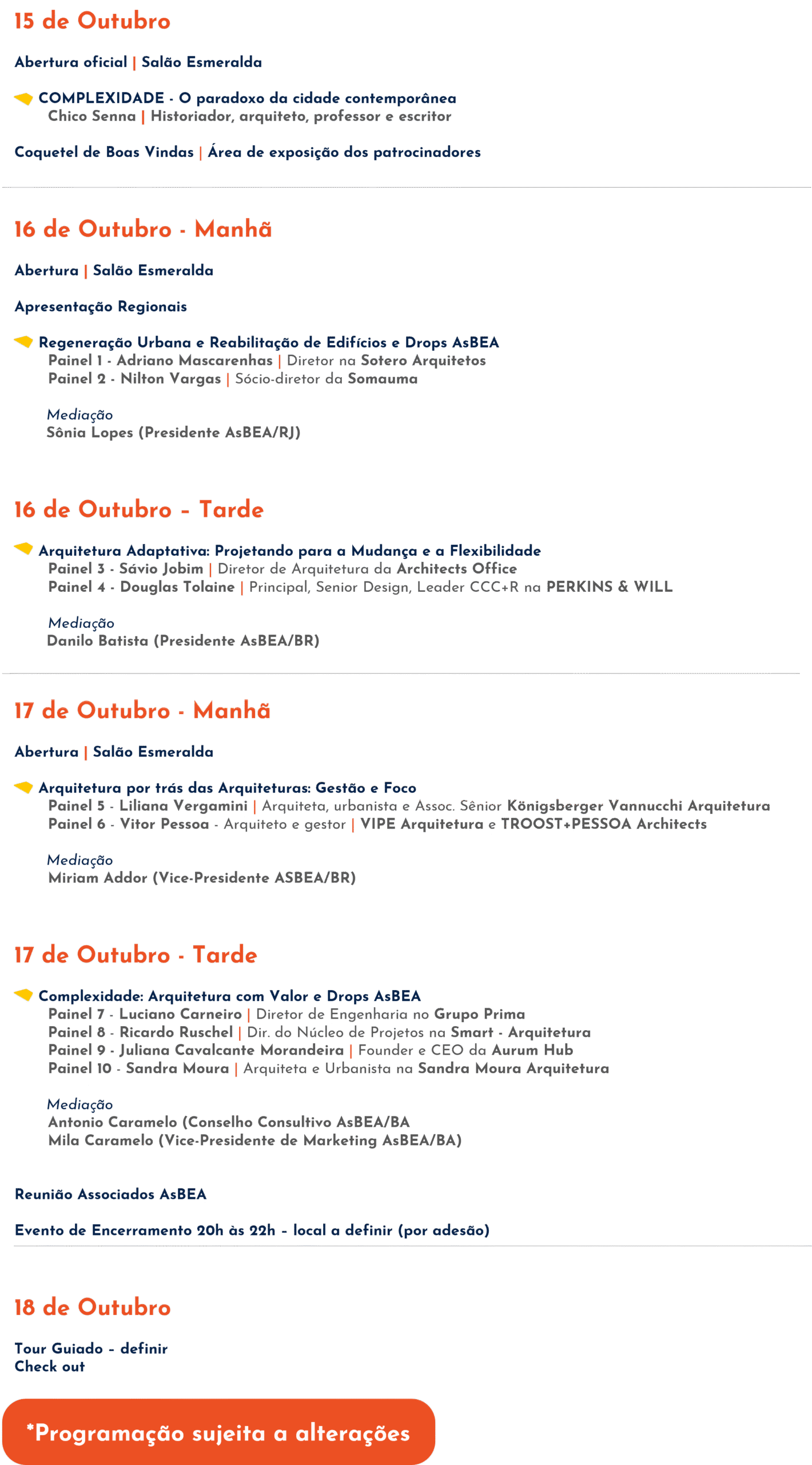 O evento reunirá arquitetos e especialistas de todo o país para discutir temas estruturantes da arquitetura e do urbanismo contemporâneo. Com uma programação que propõe eixos temáticos e subtemas transversais, a Convenção busca ampliar o debate sobre o futuro das cidades e fortalecer a troca de experiências entre profissionais, promovendo uma visão crítica e criativa sobre os rumos do setor.